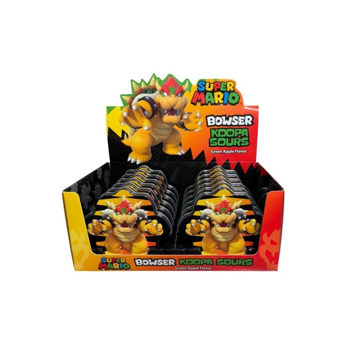 Bowser is bursting out on the scene in his tin filled with 1.5 ounces of sour green apple flavored candy. Packed 12 per display.