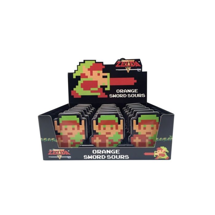 Legend of Zelda’s Link is never far from his trusted sword! The 8-bit tin contains 1 ounce of sour orange flavored sword candies. Packed 18 per display.