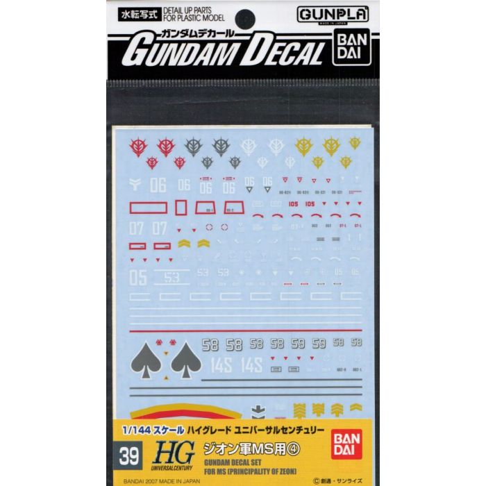 Description / GD-39 HGUC ZEON 4 "Mobile Suit Gundam", Bandai Hobby Decal (Gundam Model Decal)